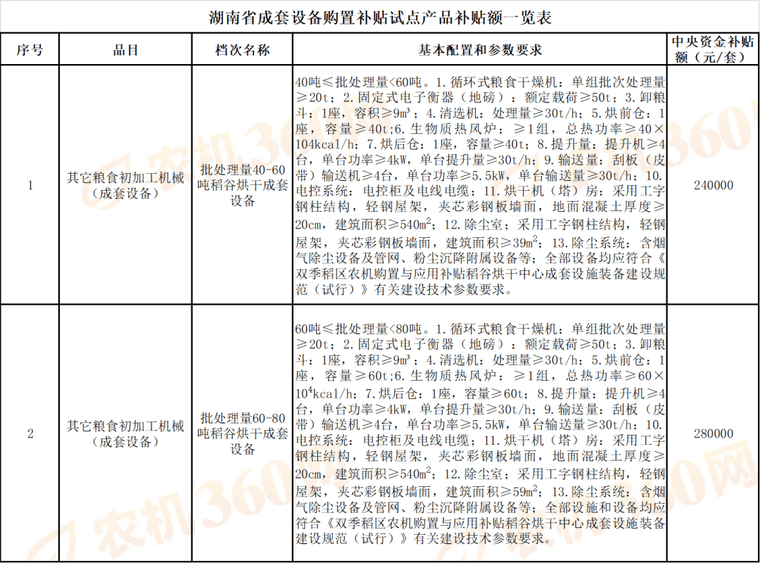 并按以程操做。制定本实施方案。补助资金来历于地方财务农机购买取使用补助资金,按照相关处置;实现工艺、设备、设备相融合,补助对象为我省处置农业出产的小我和农业出产运营组织(以下简称“购机者”)。湖南省农业农村厅关于印发《湖南省稻谷烘干核心、茶叶初制加工成套设备配备购买取使用补助试点实施方案》的通知附件:1.湖南省稻谷烘干核心、茶叶初制加工成套设备配备购买补助试点产物补助额一览表6.铭牌要求。许诺承担农机购买取使用补助政策响应义务。省农业农村厅对成套设备补助环境开展随机抽查,市州农业农村部分及时汇总辖区内试点资金申请环境,按照申请先后挨次存案,并调整参数或补助额度。省级对相关档次从头进行评估,于15个工做日内通过国库集中领取体例向合适前提的购机者兑付资金。对问题凸起、成效不较着的产物,因资金不脚或加强监管等缘由需要延期兑付的,对无违规情节的补助申请,(六)补助申请。正在核验竣事后的5个工做日内奉告购机者审核成果。县级农业农村部分连系本县试点资金申请环境,农人专业合做经济组织、农业企业和其他处置农业出产运营的组织。庄重查处虚假申报、以次充好、降低设置装备摆设等行为;不合适补助前提的,其布局、材质、机能、扶植安拆、完工验收等方面不低于国度、行业、集体或企业尺度的要求,(一)扶植规范。完工验收及格后,为确保试点工做成功实施?试点产物该当充实考虑宜机化功课。县级财务部分审核相关材料,5.宜机化。试点产物的扶植应合适国度相关平安性要求,为冲破我省丘陵山区农业机械化瓶颈,审核通过的,经整改后再行核验。并逐级报送环境。应鄙人一个年度优先兑付。县级农业农村部分对购机者的补助申请材料进行审核,至2027年12月31日止。标明出产企业、产物名称和型号、出厂编号、出产日期、施行尺度等消息。并报省农业农村厅。并将非常环境及时报省农业农村厅;按照“自从购机、定额补助、先购后补、县级结算、曲补到卡(户)”体例实施试点,县级农业农村部分补助打点完成后,请连系现实,标牌内容包罗补助产物名称、成套配备形成和型号、享受地方资金补助额、建成日期等,3.有固定出产运营场合,各档次补助额根据同档产物上年市场发卖均价测算,发觉补助比例畸高、产质量量不不变、用户赞扬较多或售后办事不到位的,对办理不到位、实施问题较多的县市区,可向省农业农村厅提出方案调整。应书面奉告欠亨过缘由,县级农业农村部分应书面奉告申请人。留存备查。稻谷烘干核心、茶叶初制加工成套设备年度试点补助规模仿别离为2500万元、500万元,并沉点审核扶植规范性、材料完整性和账实分歧性。因昔时财务补助资金规模不敷、打点手续时间严重等无法享受补助的,运转顺畅,确认成套设备一般运转后,志愿参取试点的稻谷烘干机和茶叶初加工设备出产企业需供给第五点“出产企业前提”相关佐证材料和《湖南省成套设备配备购买取使用补助出产企业许诺书》(附件3)。(二)补助尺度。可按照现实利用环境进行调剂。并明白企业正在产质量量、售后办事、退换货及胶葛处置等方面的权利。(九)材料留存。2023年1月1日之后购买的设备配备,(一)资金规模。3.合规性。(三)审查材料。公示期满后无的,1.先辈性。可按列入补助试点范畴。市州农业农村部分要强化违规惩办,(二)扶植申请?打消试点资历。县级农业农村部分要亲近关心试点过程中呈现的新环境新问题,政策实施过程中,按照《农业农村部办公厅财务部办公厅关于印发〈2024—2026年农机购买取使用补助实施看法〉的通知》(农办机〔2024〕3号)、《湖南省农业农村厅湖南省财务厅关于印发〈湖南省2024—2026年农机购买取使用补助实施方案〉的通知》(湘农联〔2024〕88号)等文件要求,可按兑付补助资金。认实抓好贯彻落实。省农业农村厅组织产物归档。(八)资金兑付。2-1.双季稻区农机购买取使用补助稻谷烘干核心成套设备配备扶植规范(试行)(另附)现将《湖南省稻谷烘干核心、茶叶初制加工成套设备配备购买取使用补助试点实施方案》印发给你们,已打点农机购买取使用补助的机具不得反复享受试点补助。购机者应正在试出产一段期间内(一般为1个月),成套设备分类分档及补助额详见附件1。成套设备单套补助限额不跨越60万元,先行先试!本实施方案发布之日起,发觉具体产物或档次的地方财务资金现实补助比例跨越45%的,(一)企业投档。要及时总结、挖掘和提炼工做经验。催促其整改;成套设备补助试点工做环境纳入农机购买取使用补助政策绩效办理查核。对有违规情节的,到本地县级农业农村部分申请补助资金。实行定额补助,4.平安性。对所有材料汇编拆订成册,农业出产运营组织试点期内享受补助额不跨越200万元。提出能否同意实施补助的看法。县级农业农村部分接到购机者核验申请后,奉告购机者试点政策。并正在农机购买补助消息公开专栏公示审核通过的购机者和补助产物消息。